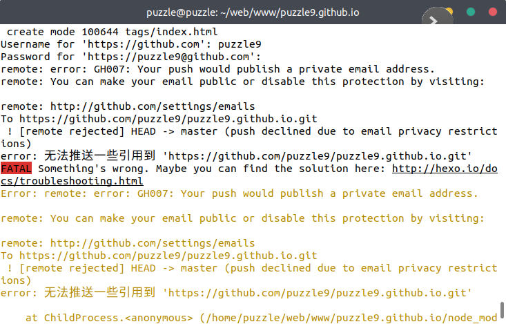 如果您推送使用私人电子邮件的提交作为您的作者电子邮件,我们将阻止推送并警告您公开您的私人电子邮件。